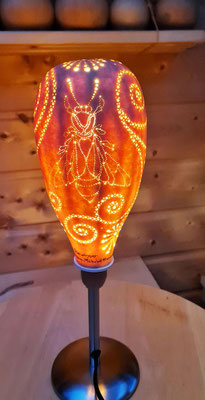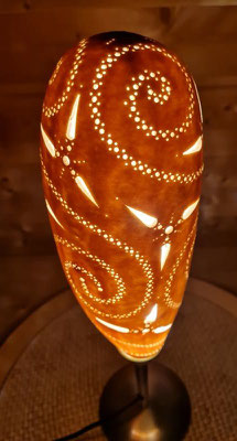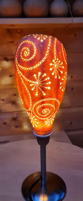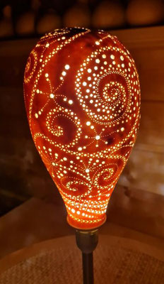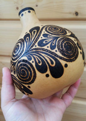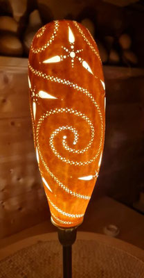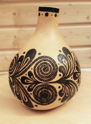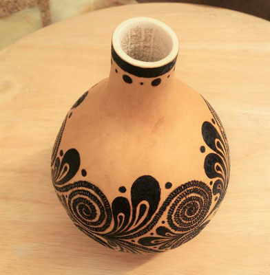 Kalebassen – natürliche, nachwachsende, biologisch abbaubare und kompostierbare Rohstoffe – die vom Menschen weltweit seit Jahrtausenden kultuvuert und genutzt werden. Ich baue sie an, verarbeite und nutze sie in meinem Alltag: ob Behälter, Schale, Flasche, Lampe oder Musikinstrument – der vielfältigen Nutzungsformen des Flaschenkürbis Lagenaria siceraria ist kein Ende gesetzt. In Workshops vermittele ich Wissen zur Botanik und Kultivierung, der verschiedenen Verarbeitungsarten und Nutzungsmöglichkeiten der unterschiedlichen Langenaria - Sorten. Für den Workshops werden Kalebassen zur Verfügung gestellt, sowie diverse Arbeitsmaterialien und Werkzeuge, die gebraucht werden. Hier sehen sie eine Auswahl aus dem eigens-hergestellten Kalebassengefäße, die ich zum Kauf anbiete.